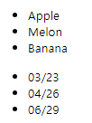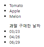 2. 두 번째 묶음의 나열된 값들 앞에 텍스트 추가하고 '과일'은 굵게 표시하기