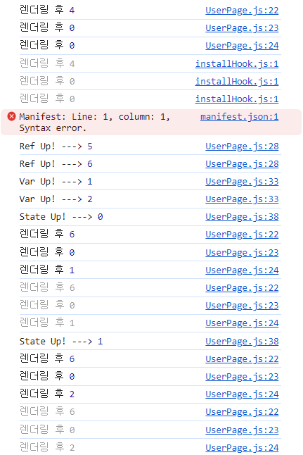 - useState의 경우 변화될 때마다 렌더링이 되는데 값은 유지되는 것을 확인할 수 있다.