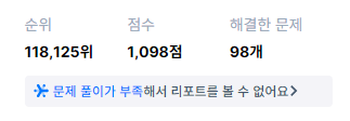 암튼 ! 본격적인 코딩 테스트 준비 전 순위는 118,125위이고